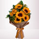 Ramo de 03 girasoles en envoltura fina acompañado de follaje y variedades.