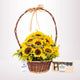 Canasta con 9 rosas importadas, astromelias y claveles y lazo de organza.Altura: 40 cmAncho: 30 cm